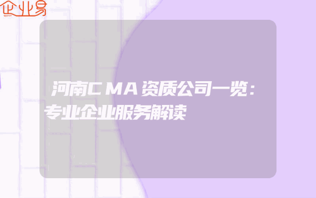 - 河南CMA资质公司一览:专业企业服务解读