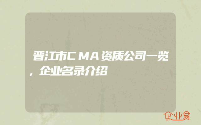 - 晋江市CMA资质公司一览,企业名录介绍
