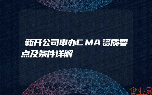 - 新开公司申办CMA资质要点及条件详解