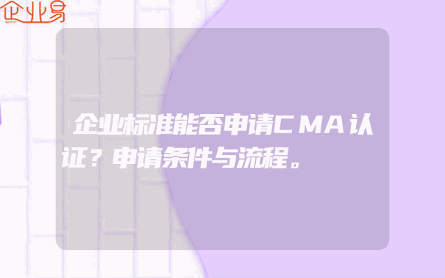 - 企业标准能否申请CMA认证?申请条件与流程。