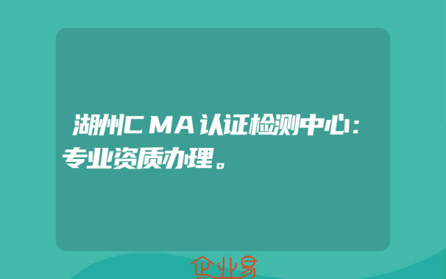 - 湖州CMA认证检测中心:专业资质办理与高效服务体验。