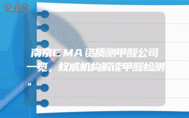- 南京CMA资质测甲醛公司一览,权威机构解读甲醛检测。