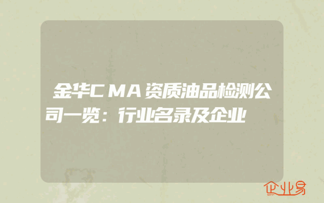 - 金华CMA资质油品检测公司一览:行业名录及企业