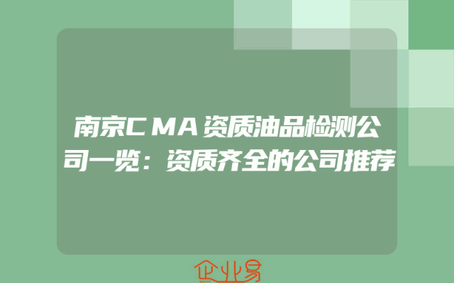 - 南京CMA资质油品检测公司一览:资质齐全的公司推荐