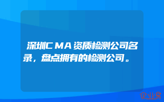 - 深圳CMA资质检测公司名录,盘点拥有的检测公司。