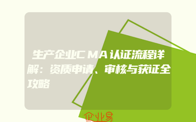 - 生产企业CMA认证流程详解:资质申请、审核与获证全攻略