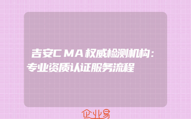 - 吉安CMA权威检测机构:专业资质认证服务流程