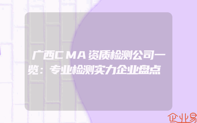 - 广西CMA资质检测公司一览:专业检测实力企业盘点