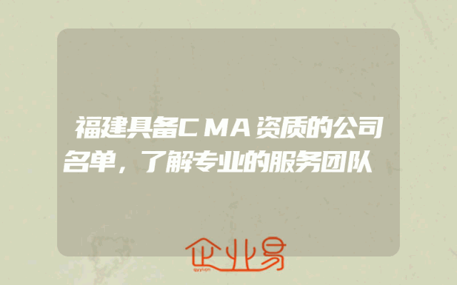 - 福建具备CMA资质的公司名单,了解专业的服务团队