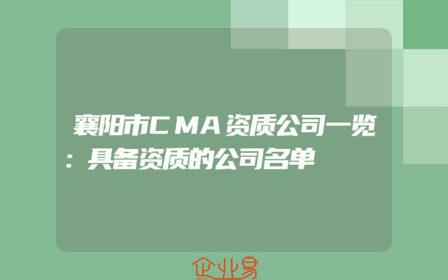 - 襄阳市CMA资质公司一览:具备资质的公司名单