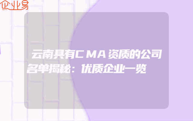 - 云南具有CMA资质的公司名单揭秘:优质企业一览