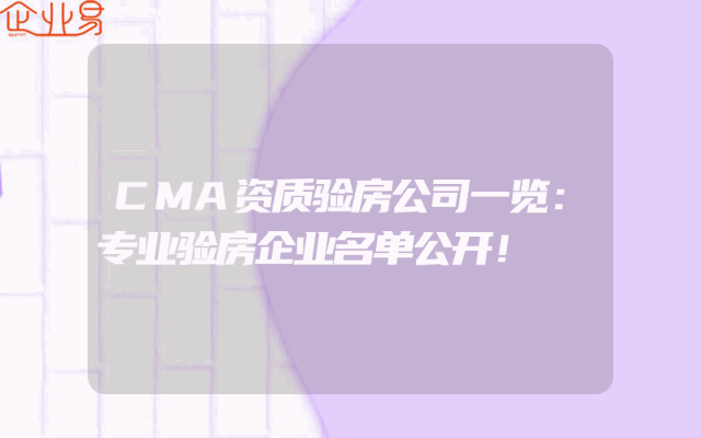- CMA资质验房公司一览:专业验房企业名单公开!随着房地产市场的快速发展,验房行业逐渐崭露头角。拥有CMA(中国计量认证)资质的验房公司在行业内扮演着重要的角色。本文将从多个角度阐述CMA资质验房公司的重要性,并公开专业验房企业名单,以供广大