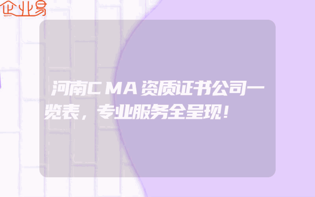 - 河南CMA资质证书公司一览表,专业服务全呈现!