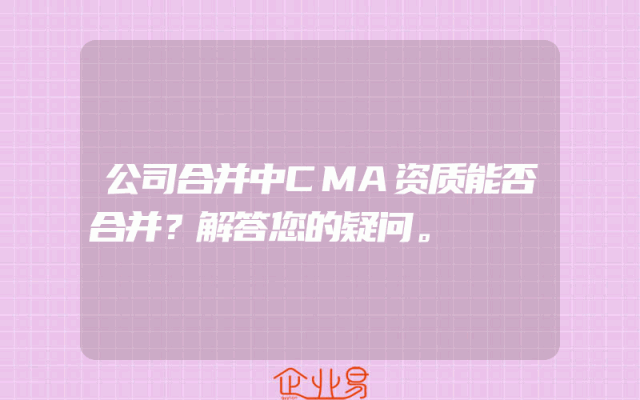 - 公司合并中CMA资质能否合并?解答您的疑问。