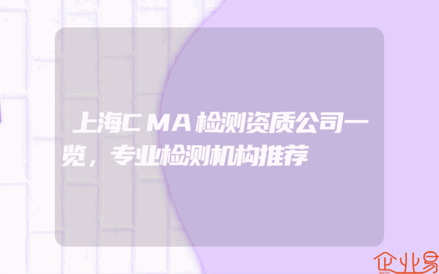 - 上海CMA检测资质公司一览,专业检测机构推荐