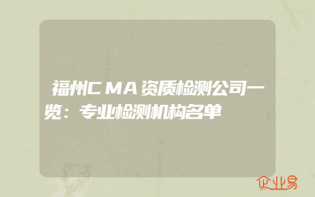 - 福州CMA资质检测公司一览:专业检测机构名单