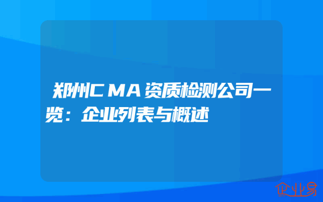 - 郑州CMA资质检测公司一览:企业列表与概述