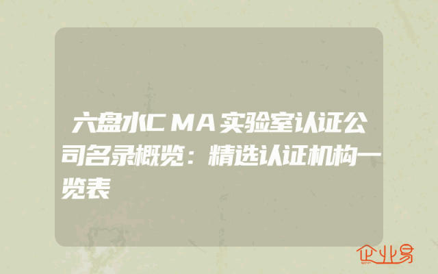 - 六盘水CMA实验室认证公司名录概览:精选认证机构一览表