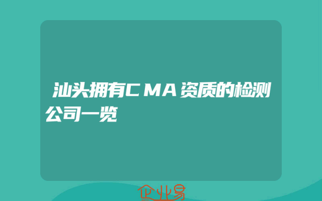- 汕头拥有CMA资质的检测公司一览一、CMA资质概述CMA(ChinaMetrologyAccreditation)是中国计量认证英文的缩写,是对检测机构进行检测能力的一次权威肯定。在各行各业中,拥有CMA资质的检测公司都能够提供专业的数据支