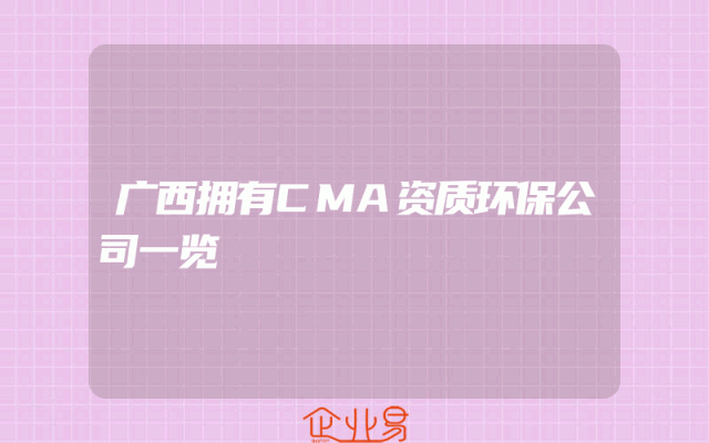 - 广西拥有CMA资质环保公司一览一、CMA资质概述CMA资质,即中国计量认证资质,是环保领域的重要认证之一。拥有CMA资质的环保公司,代表着其在检测、评估、咨询等环保服务方面具备了权威性和公信力。在广西,越来越多的环保公司开始重视并获取CMA