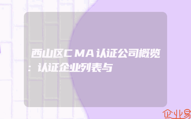 - 西山区CMA认证公司概览:认证企业列表与
