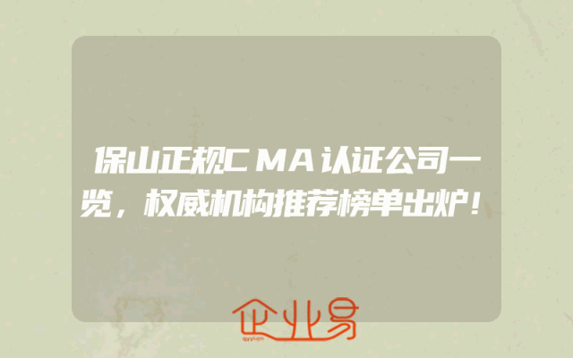 - 保山正规CMA认证公司一览,权威机构推荐榜单出炉!