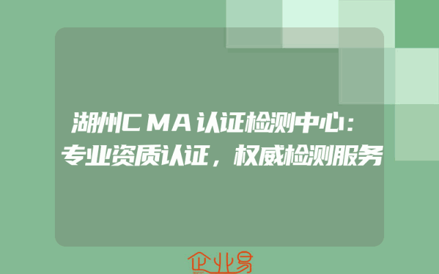 - 湖州CMA认证检测中心:专业资质认证,权威检测服务