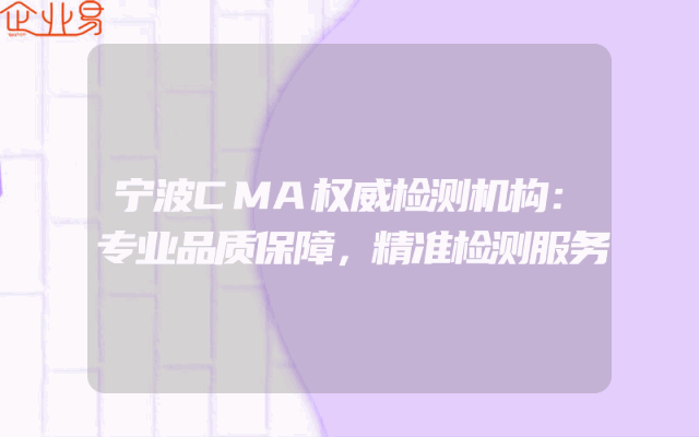 - 宁波CMA权威检测机构:专业品质保障,精准检测服务