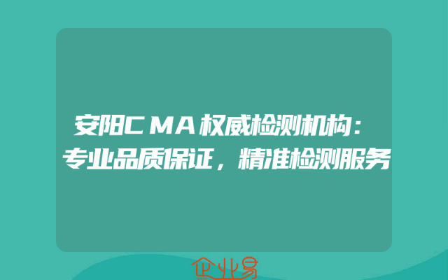 - 安阳CMA权威检测机构:专业品质保证,精准检测服务