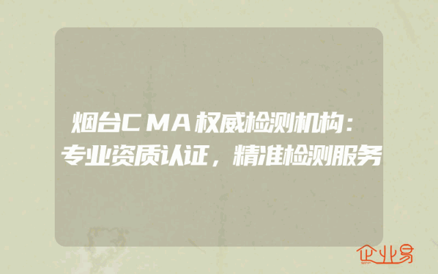 - 烟台CMA权威检测机构:专业资质认证,精准检测服务