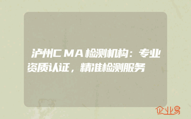 - 泸州CMA检测机构:专业资质认证,精准检测服务