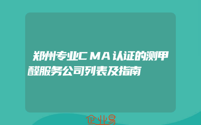 - 郑州专业CMA认证的测甲醛服务公司列表及指南