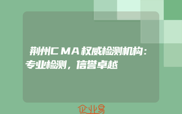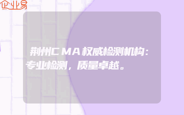 - 荆州CMA权威检测机构:专业检测,信誉卓越