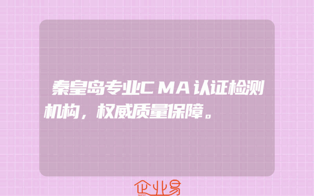 - 秦皇岛专业CMA认证检测机构:权威质量保障的全方位解读一、引言在质量检测的领域里,CMA认证是衡量一个检测机构是否具备专业性和权威性的重要标准。秦皇岛的CMA认证检测机构,以其严谨的态度、专业的技术和权威的质量保障,赢得了广大企业和客户的信