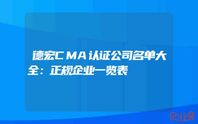 - 德宏CMA认证公司名单大全:正规企业一览表