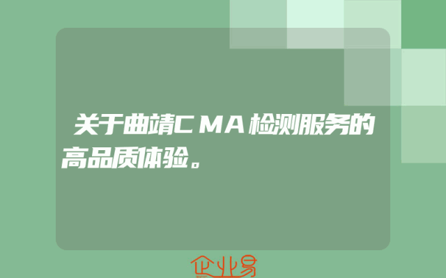 - 好的,关于曲靖CMA检测服务的高品质体验一、曲靖CMA检测服务的概述曲靖作为云南省的重要城市,近年来经济发展迅速,其中服务业也日渐繁荣。在众多服务领域中,CMA检测服务以其专业性、准确性和公正性得到了广大企业和消费者的信赖。曲靖的CMA检测