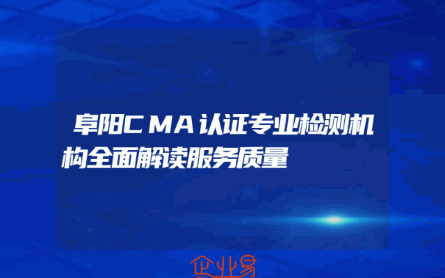 - 阜阳CMA认证专业检测机构全面解读服务质量