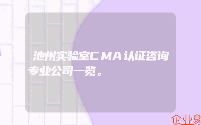 - 池州实验室CMA认证咨询专业公司一览。
