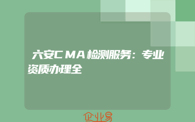 - 六安CMA检测服务:专业资质办理全