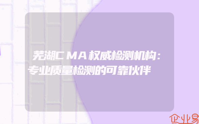 - 芜湖CMA权威检测机构:专业质量检测的可靠伙伴