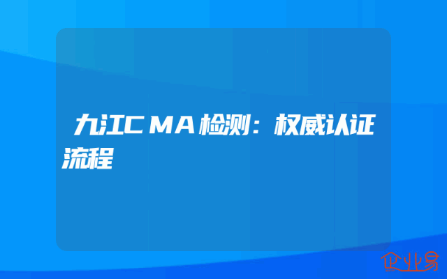 - 九江CMA检测:权威认证流程