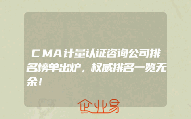 - CMA计量认证咨询公司排名榜单出炉,权威排名一览无余!