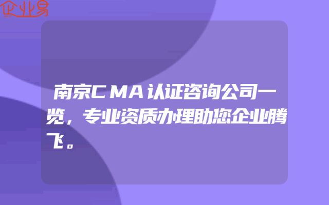 - 南京CMA认证咨询公司一览,专业资质办理助您企业腾飞。
