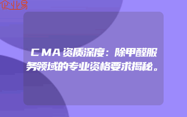 - CMA资质深度:除甲醛服务领域的专业资格要求揭秘。