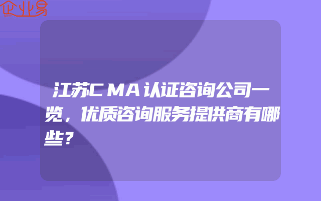 - 江苏CMA认证咨询公司一览,优质咨询服务提供商有哪些?