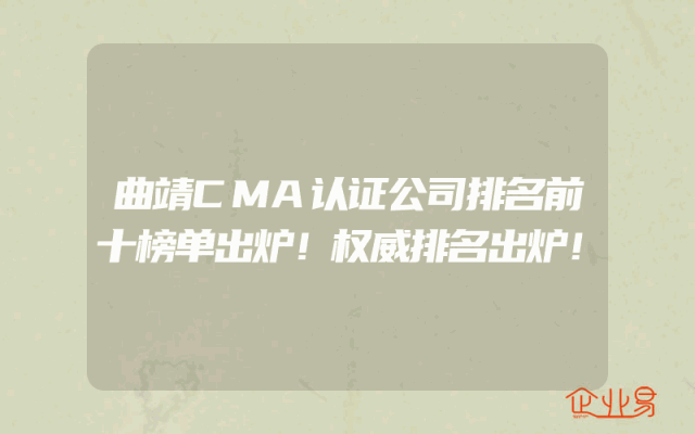 - 曲靖CMA认证公司排名前十榜单出炉!权威排名出炉!