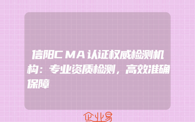 - 信阳CMA认证权威检测机构:专业资质检测,高效准确保障