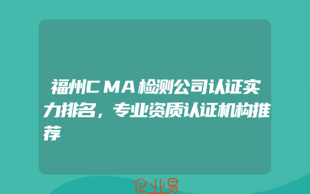 - 福州CMA检测公司认证实力排名,专业资质认证机构推荐