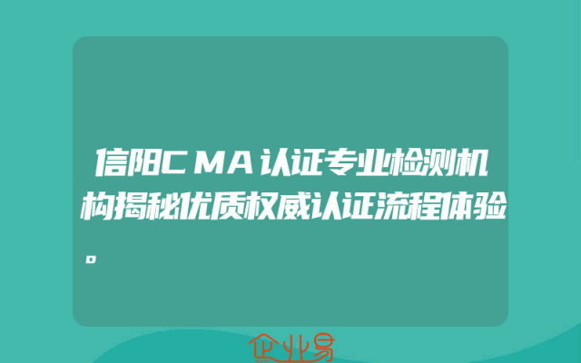 - 信阳CMA认证专业检测机构揭秘优质权威认证流程体验。