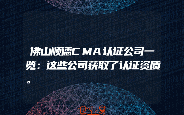 - 佛山顺德CMA认证公司一览:这些公司获取了认证资质。